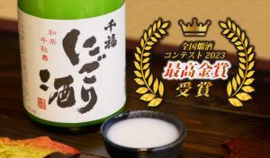 日本酒「千福」醸造元 株式会社三宅本店(広島県呉市 代表取締役社長 三宅清嗣)では、2009年から開催されている世界で唯一、温めて美味しい酒を選ぶ日本酒コンテスト“全国燗酒コンテスト2023”にて、「千福 にごり酒」が最高金賞を受賞しました。(2023年8月18日発表 出品総数808点)