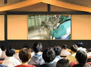 まずは場内のホールに入り、動画で「日本酒の歴史」や「発酵の違い」といったお酒の基礎知識や、「日本酒を仕込む様子」をご覧頂けます。